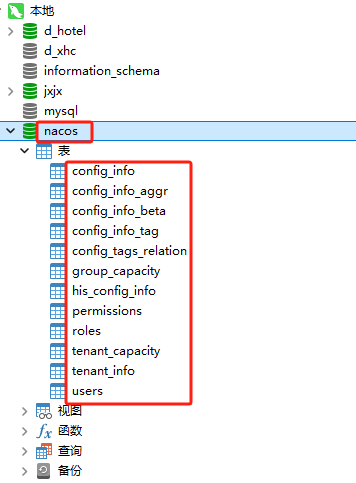 我们以mysql为例,新建一个数据库(例如:nacos),把 mysql-schema脚本运行到数据库中,运行结果如下图所示。