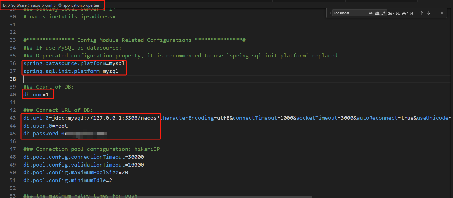 找到 nacos/conf 下面的 application.properties文件,修改以下配置