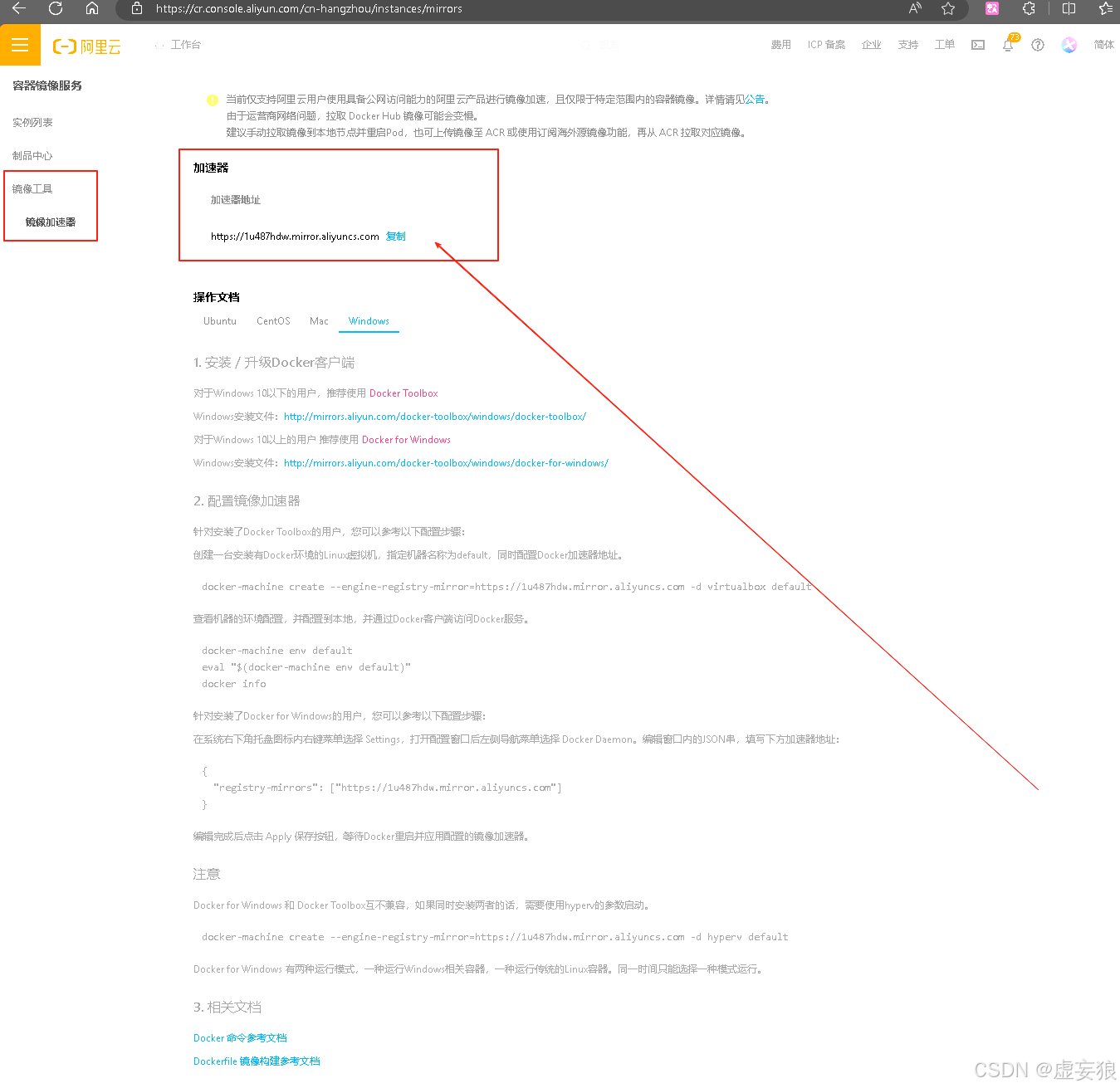 在左侧栏 ---> 镜像工具 ---> 镜像加速器