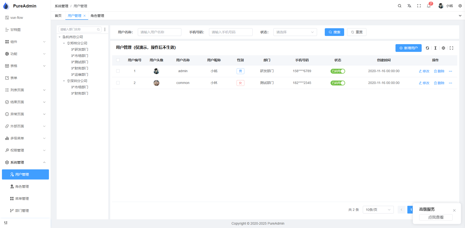 - 在线预览:https://pure-admin.github.io/vue-pure-admin