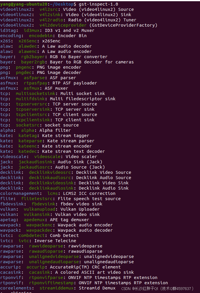 使用gst-inspect-1.0可以检测到本地安装了哪些模块,如下: