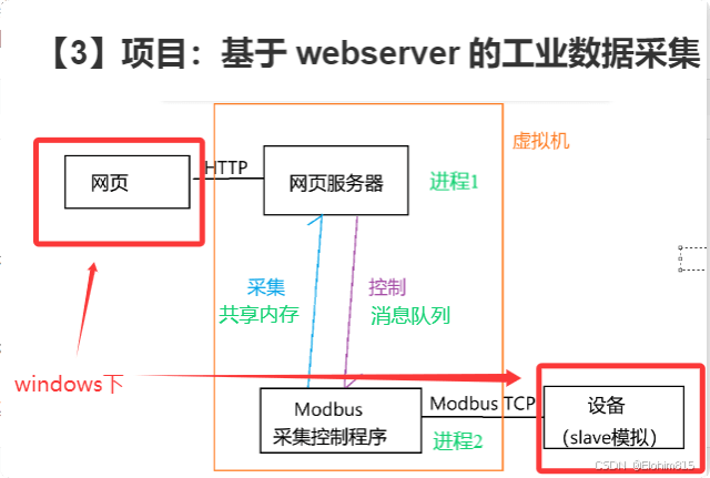 对于控制信息:网页端点击操作后,网页服务器收到相应的数据(即要实现的指令),并通过消息队列将指令传给Modbus 采集控制程序,然后Modbus 采集控制程序再通过modbus tcp的05功能实现对slave的控制