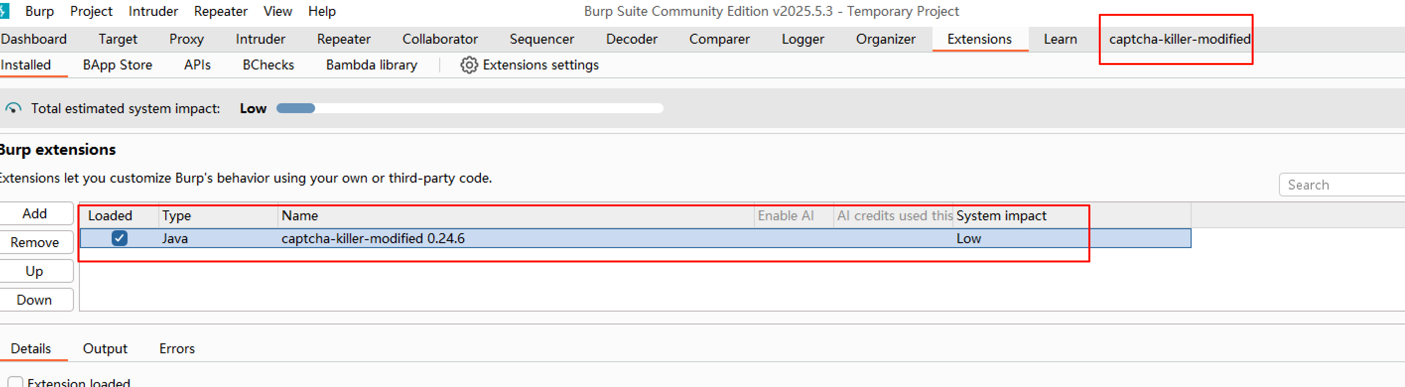 使用Burp加载captcha-killer-modified.jar