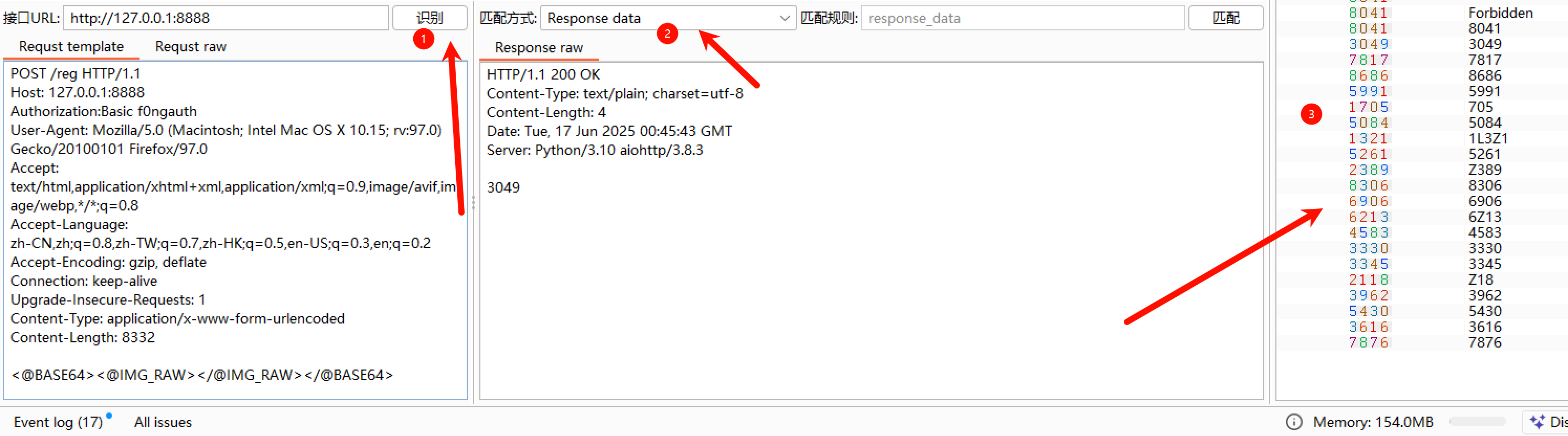 4.在burp的captcha页面配置接口URL和请求模板(Request template)