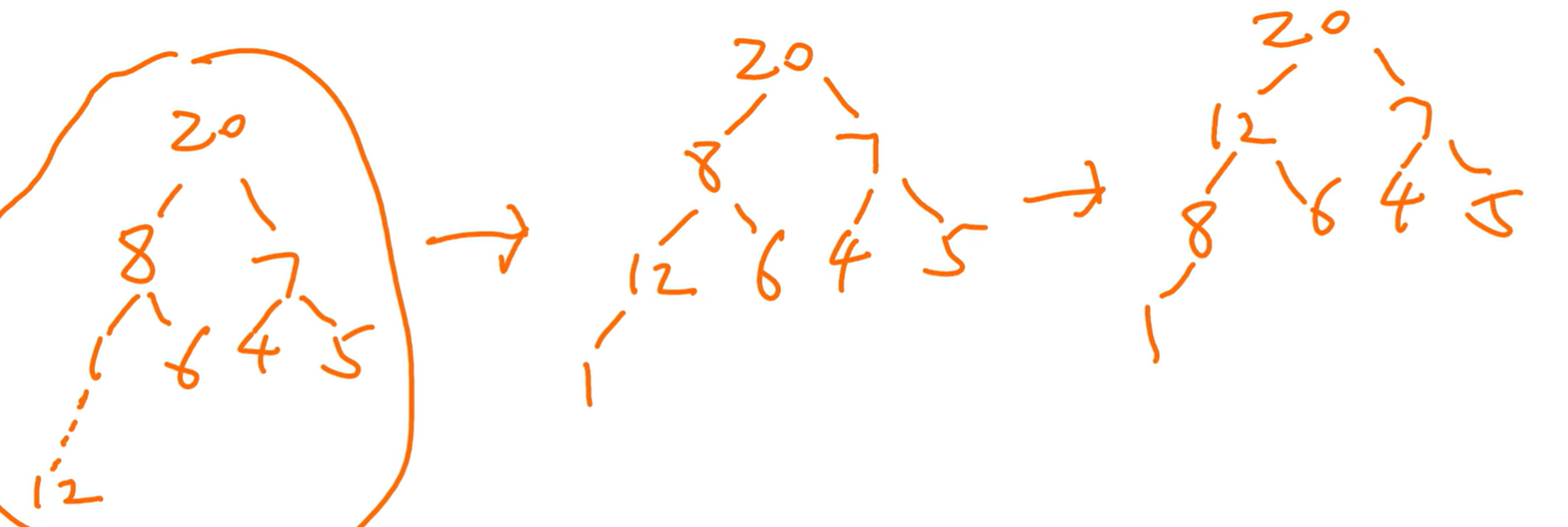 因为已经是一个大根堆了,我们12只要一直往上比就行了,不用和6比,8下来之后也不用和任何人比。无欲无求了属于是