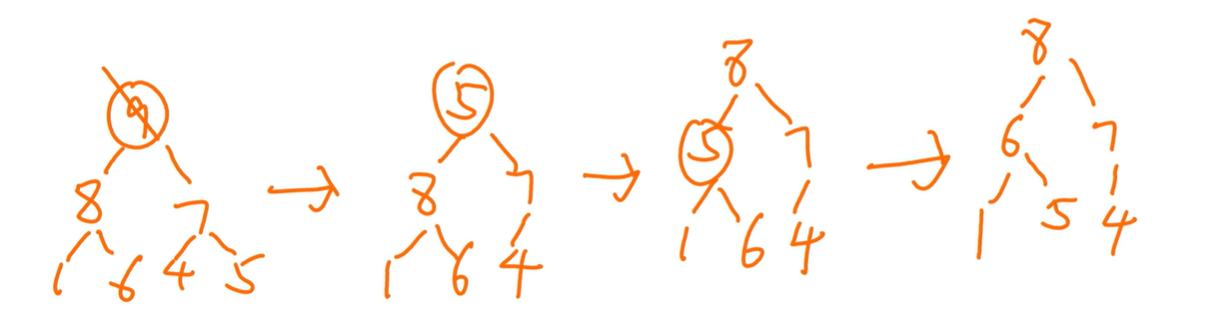 规则就是不断的删除堆顶就行,这里删9,并确定9是最大的