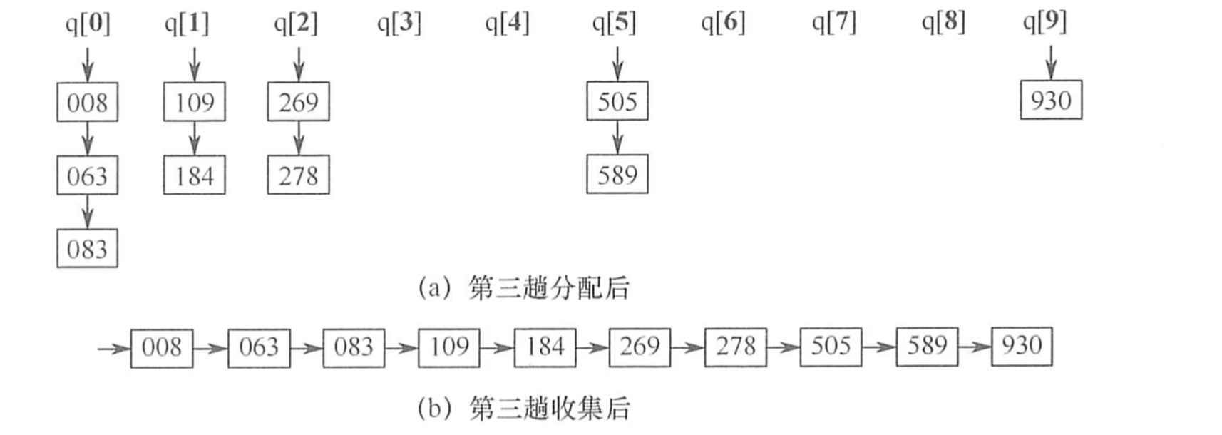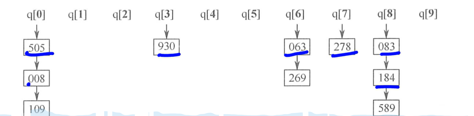 然后按照收集好的再进行第二次分配,并且按照十位数分配