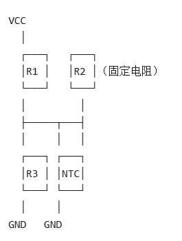 原理 :将NTC与固定电阻串联,通过分压电路将电阻变化转换为电压变化,再用ADC读取电压值。