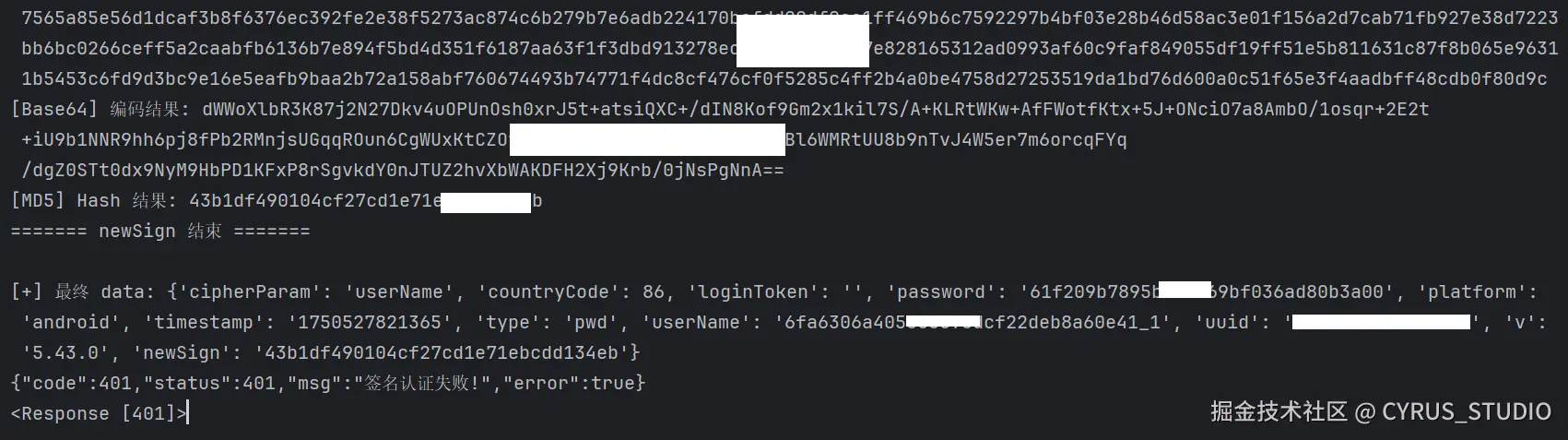 假如 newSign 算法不对会调用失败,返回结果如下: