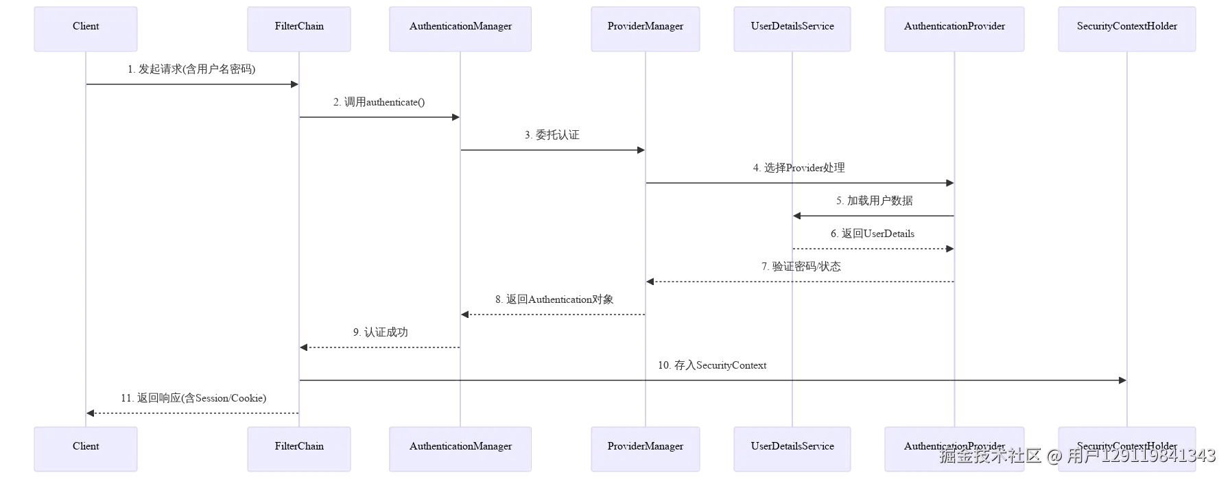 AbstractUserDetailsAuthenticationProvider(实现DaoAuthenticationProvider)为例,大致过程为: