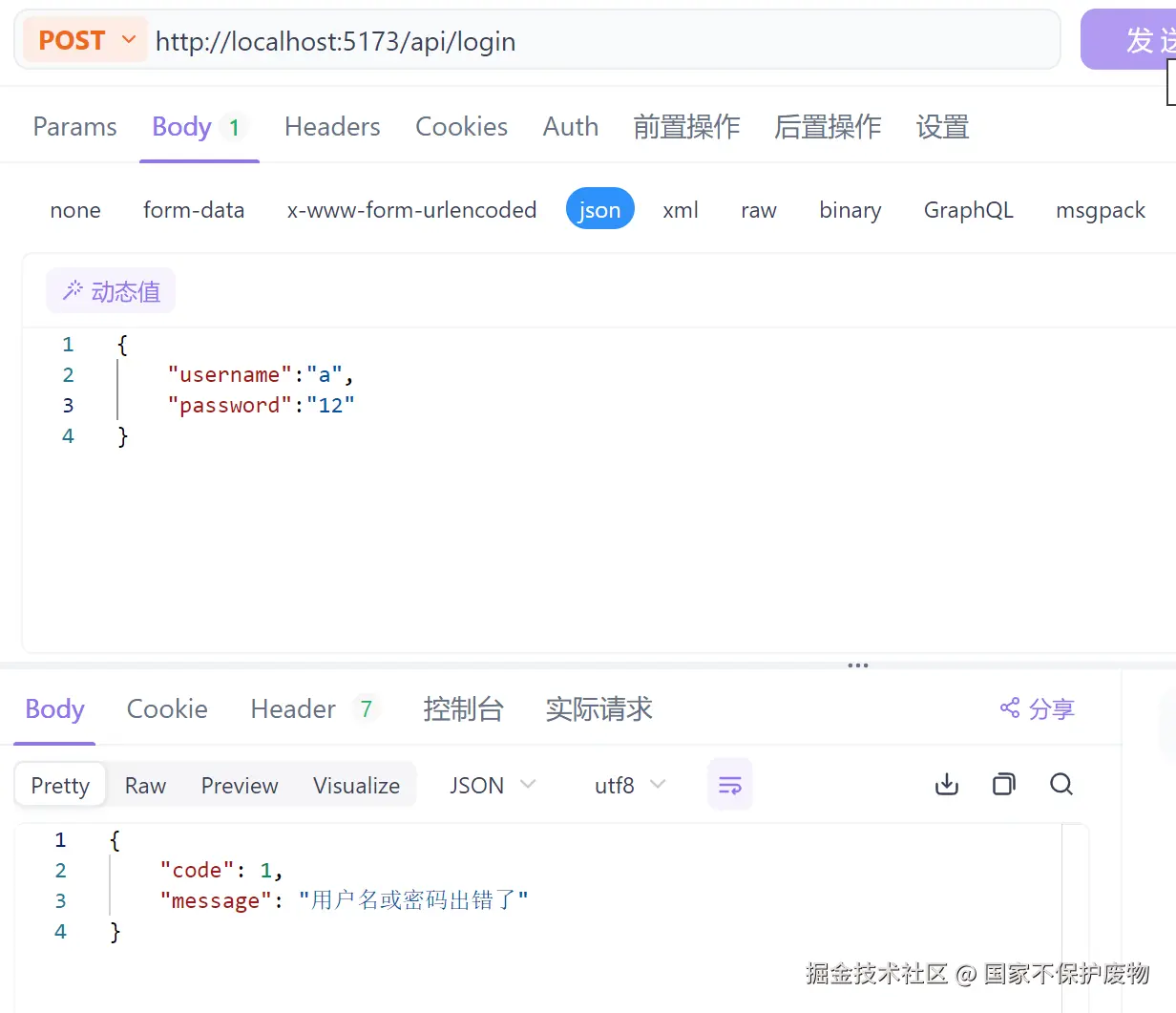 当用户输入用户名和密码后,前端将这些信息发送到后端 /api/login 接口。