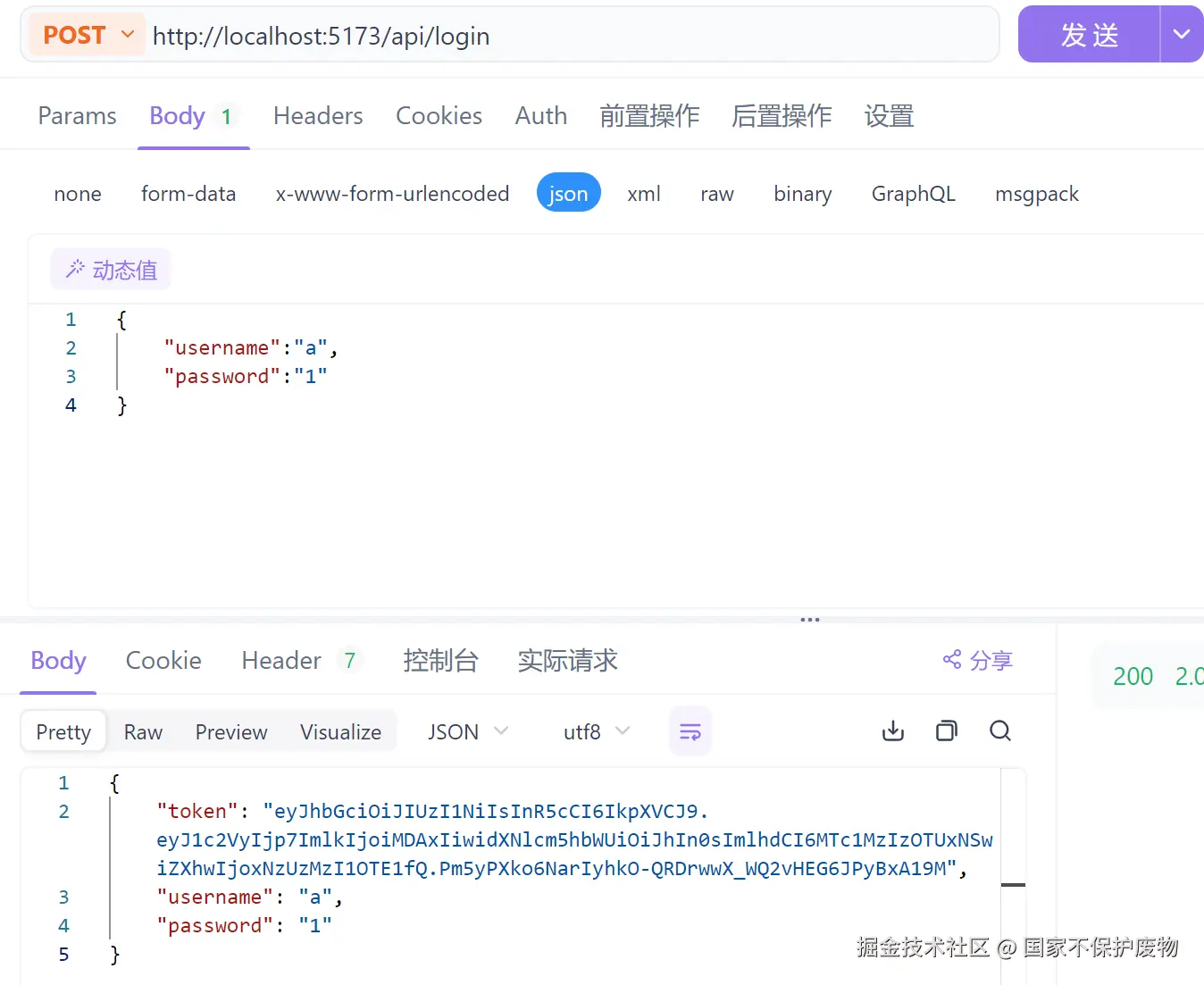 jsonwebtoken使用提供的secret对 payload 进行签名。这意味着任何人即使能够查看到 JWT 的内容(因为 JWT 是可以被解码的),如果没有正确的secret,也无法伪造一个有效的 JWT。 - 验证 :当接收到一个 JWT 请求时,服务器端需要使用相同的