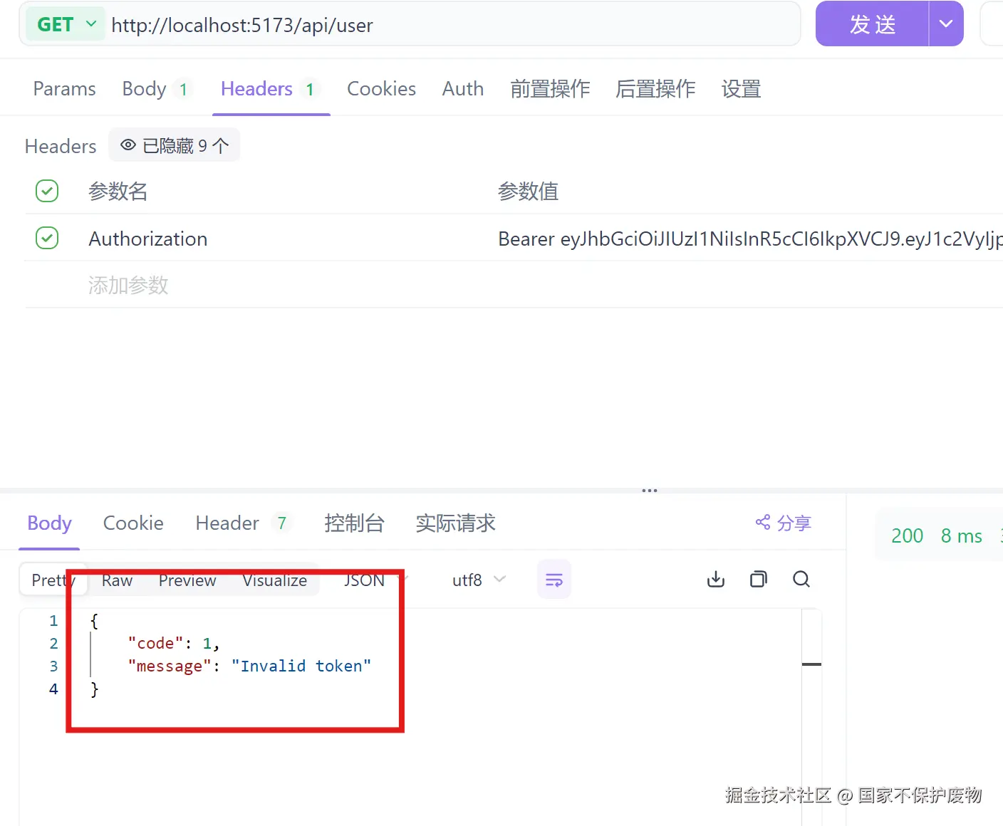 在受保护的接口中,后端需要验证 Token 的合法性。