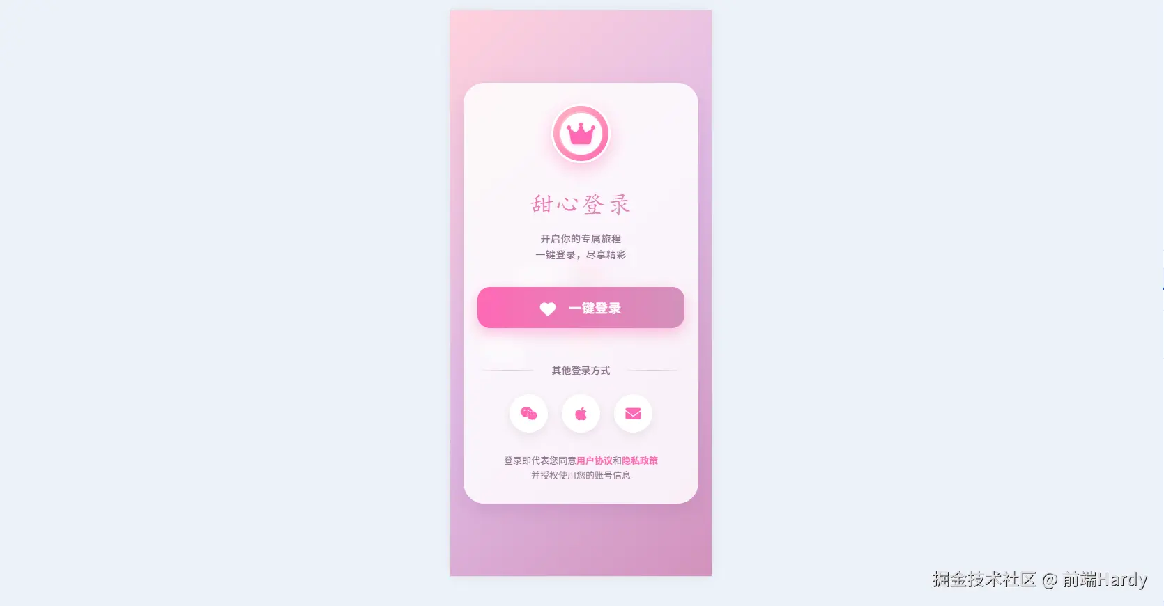 - .login-btn:粉色渐变、圆角、阴影,含 hover/active 位移+阴影变化;