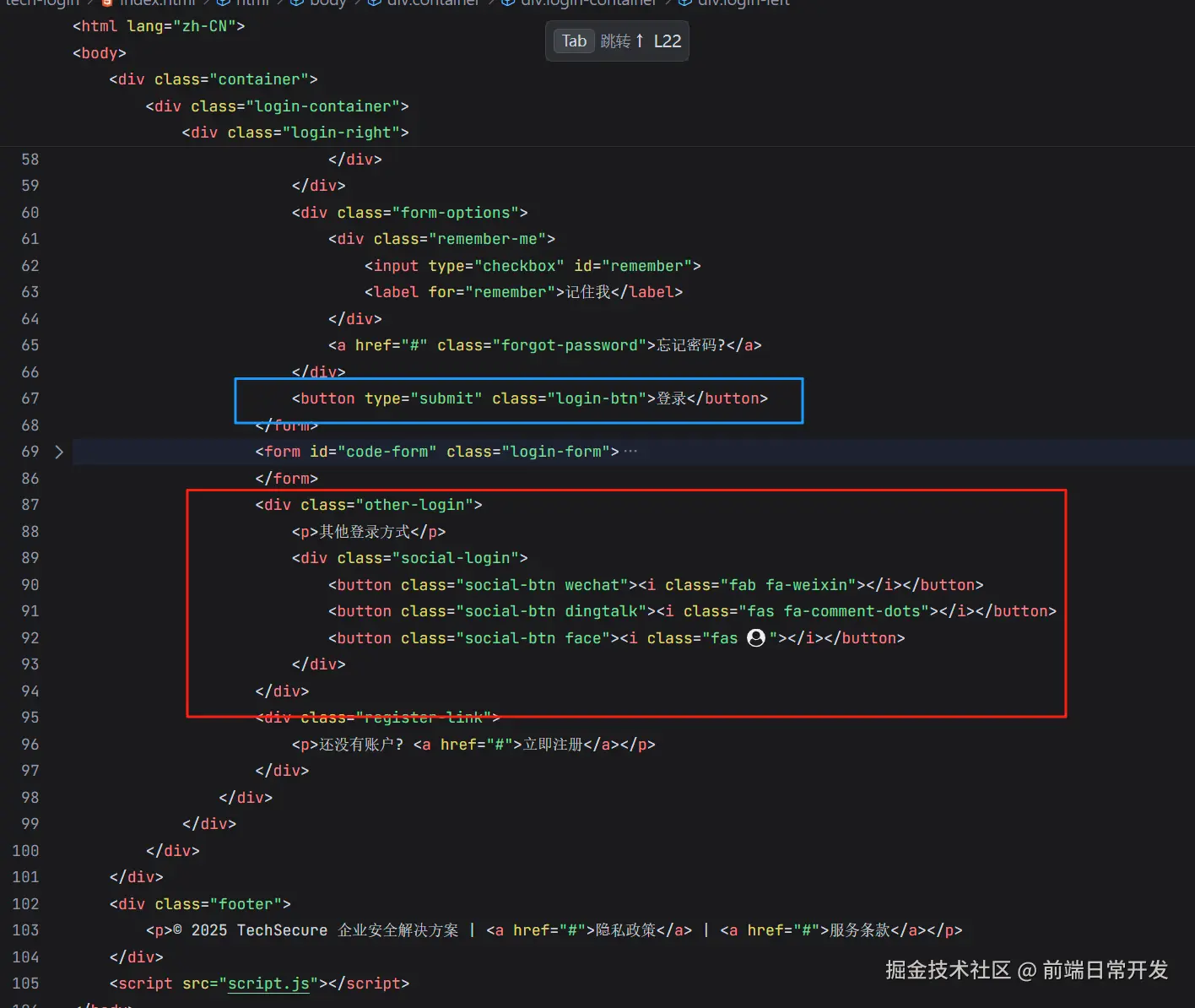 其他登录方式的实现也比较简单,就是在登录表单下面添加个其他登录方式的按钮,点击按钮就跳转到对应的登录页面,放在登录按钮下方。