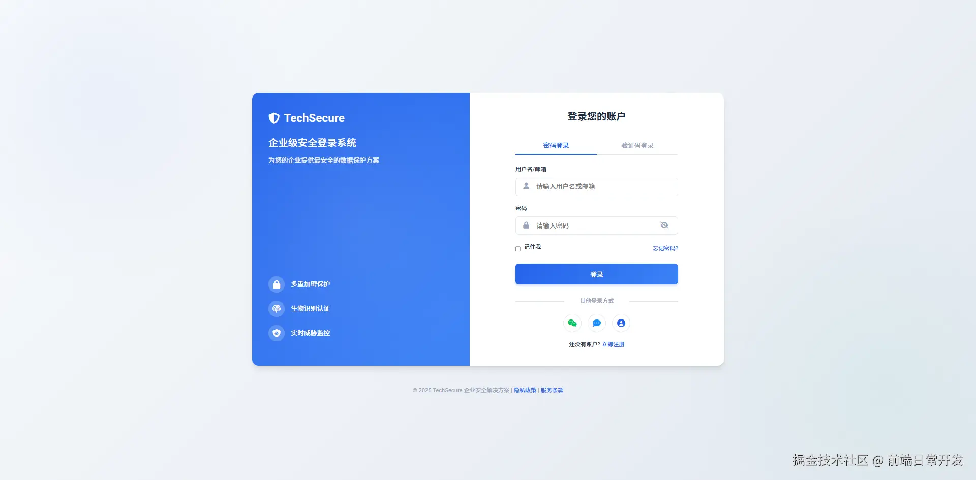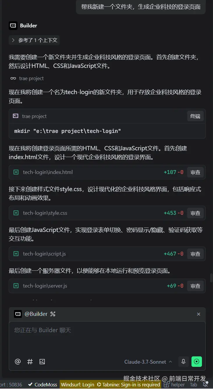 是不是有点企业级的登陆页面那个味道了,我只是简单的使用了Trae,自己写了个登录页面,但是效果还是不错的,至少比我之前写的登录页面好看很多,看起来像企业级的登录页面