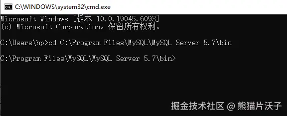 再打开一个新的命令行cmd窗口,还是一样使用cd命令进入 MySQL 的