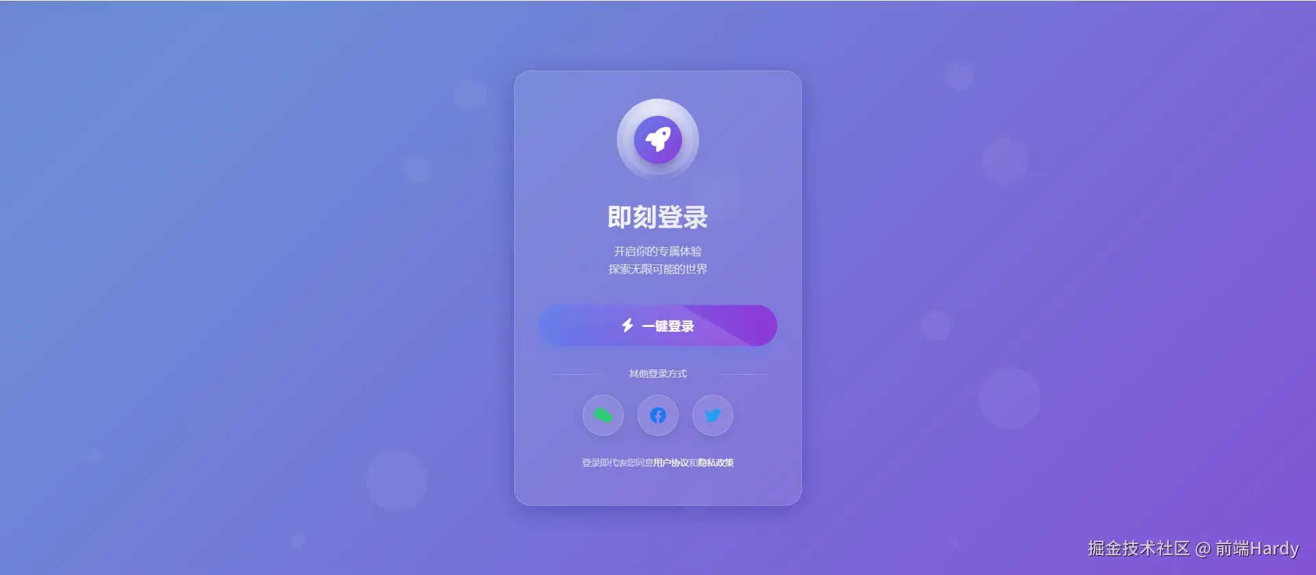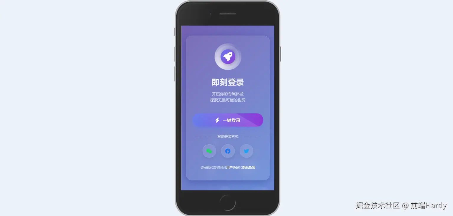 这个 HTML 文件通过 CSS 动画和 JavaScript 交互,创建了一个具有动态背景和交互效果的一键登录页面。