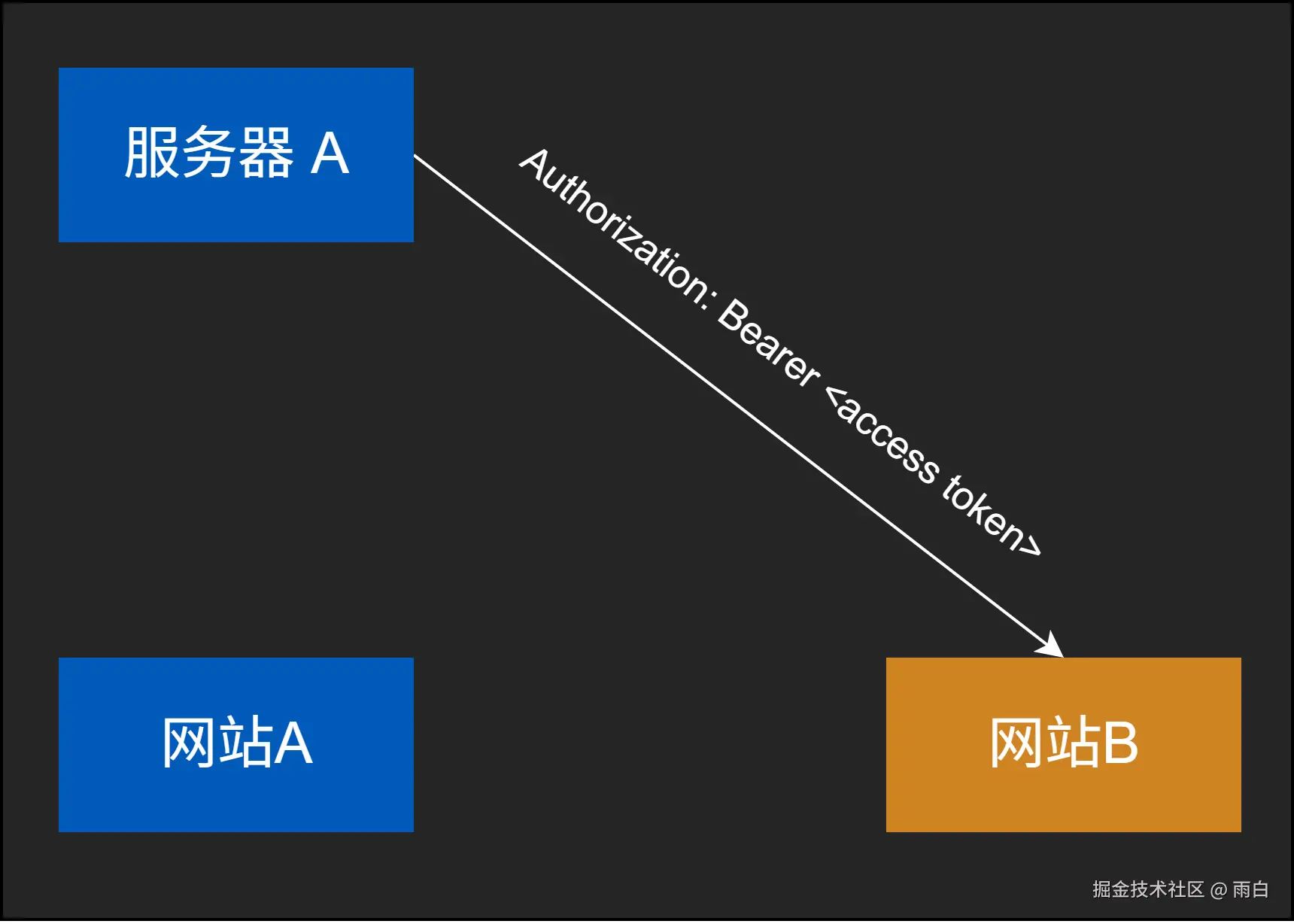 首先,第三方网站 A(如掘金)会向授权方网站 B(如 Github)申请第三方授权合作,得到
