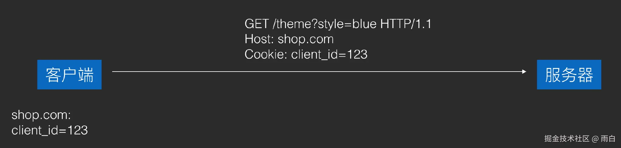 ?from=shop.com,用来给网站 B 的服务器提供额外的信息:你是从哪个网站中访问到这张图片的。更常见的是,在网页加载含有第三方网站 B 的资源时,浏览器会自动请求这个资源链接。此时,网站 B 的服务器就可以在响应中设置其专属的 Cookie(例如