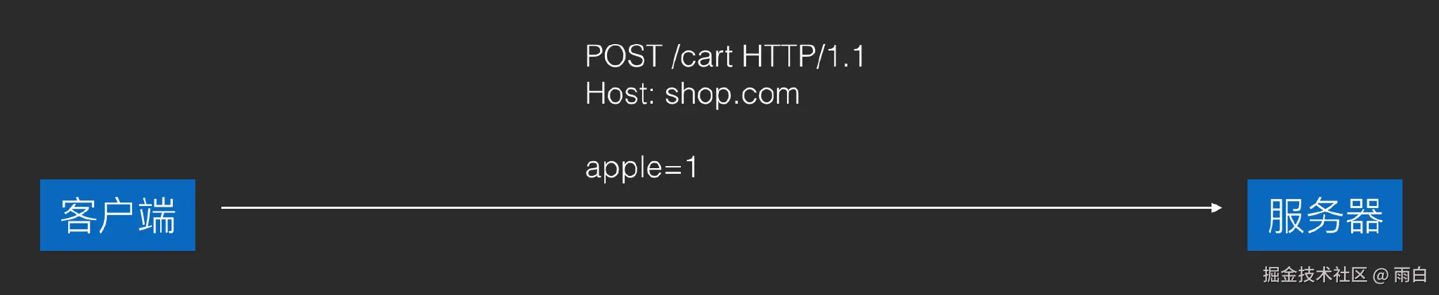 比如用户往购物车添加了苹果,那么浏览器会给服务器发送请求,Body 中包含表示苹果的数据。