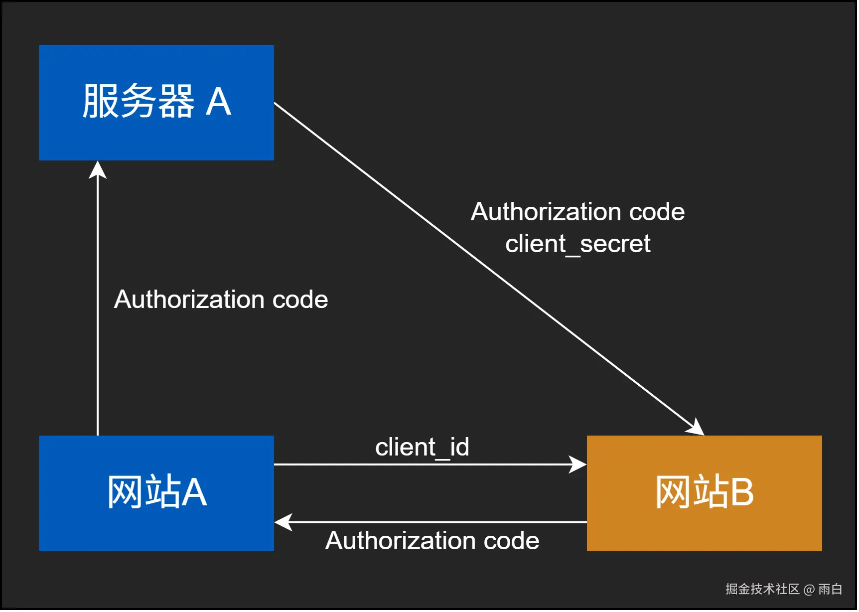 在用户授权后,网站 B 会返回一个 Authorization Code 给网站 A,这个是授权码,不过它并不是 Token,而是用来获取 Token 的。