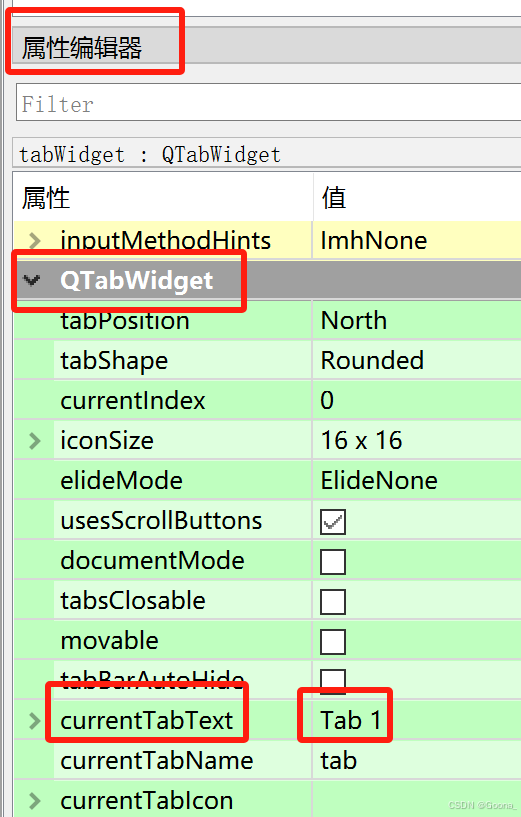 拖入后,默认标签有两个,分别是Tab 1和Tab 2,需要将其分别重命名为"普通用户"和"管理员"。单击选中当前Tab Widget,在"属性编辑器"中找到"currentTabText",单击"Tab 1"可将其修改为"普通用户",Tab 2也是同理。