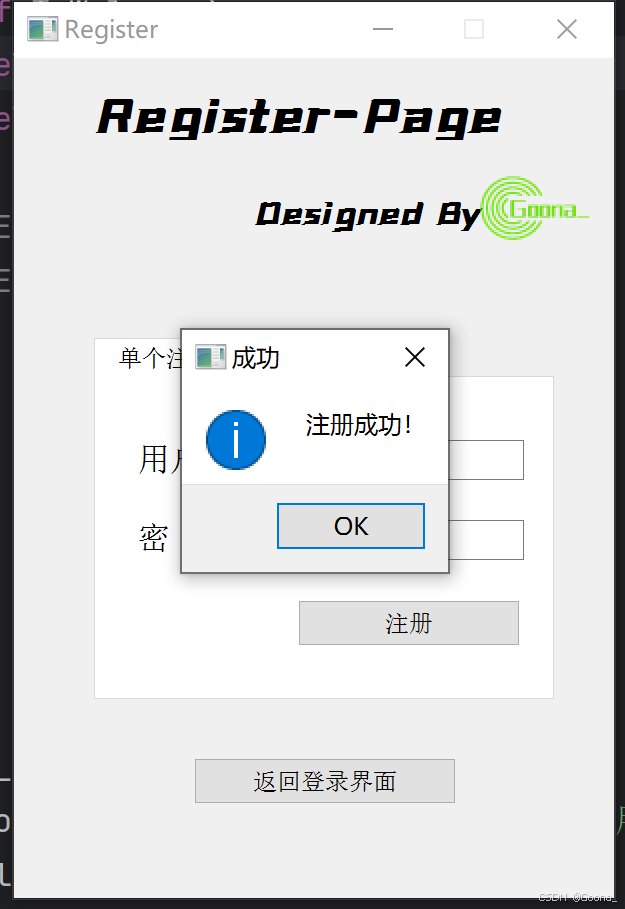 QtWidgets.QMessageBox.information(self, "成功", "注册成功!")