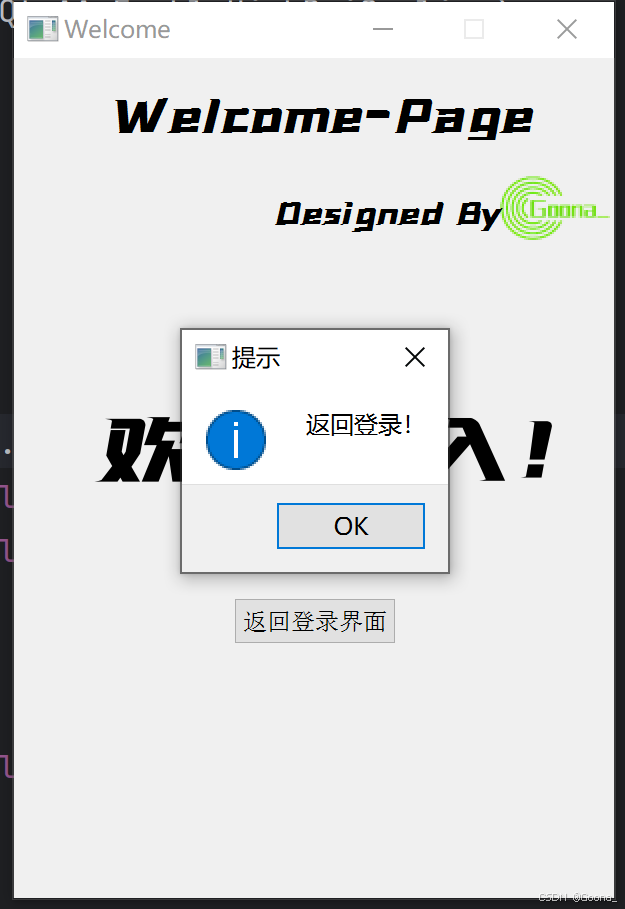 QtWidgets.QMessageBox.information(self, "提示", "返回登录!")