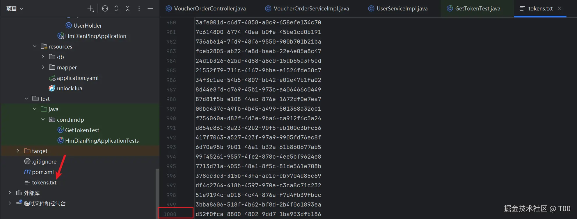 System.out.println("已生成 1000 个 token,保存在 tokens.txt");