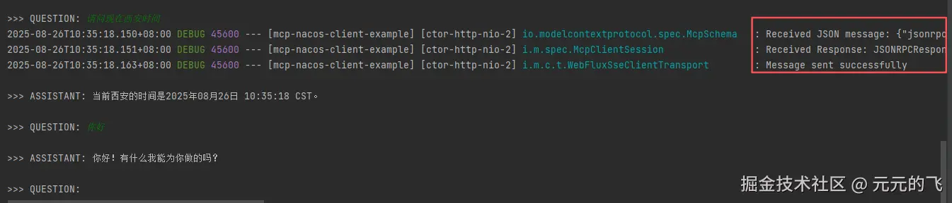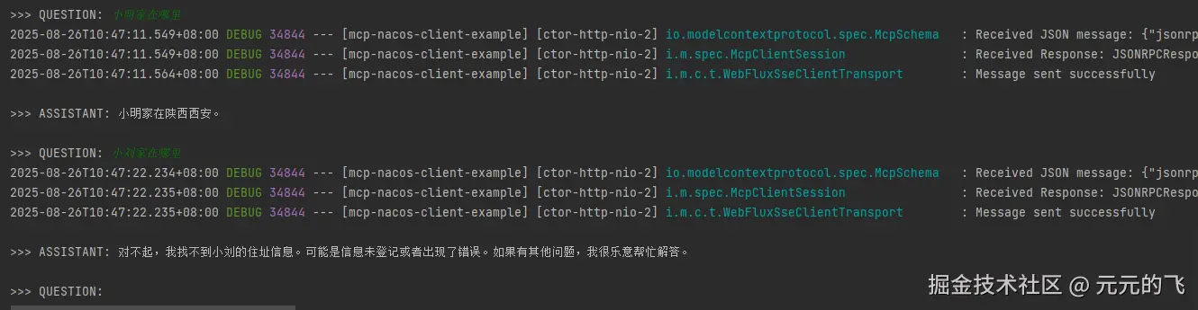 大模型跟据用户提出的问题来判断应该使用哪一个函数。每个函数都有其特定的功能和输入参数要求,这些信息在函数定义时的描述中已经给出。例如,如果你询问某个城市当前的时间,大模型就会识别到需要调用 webflux_mcp_server_getCityTimeMethod 函数,并且会准备相应的参数如 timeZoneId 来满足函数的调用需求。