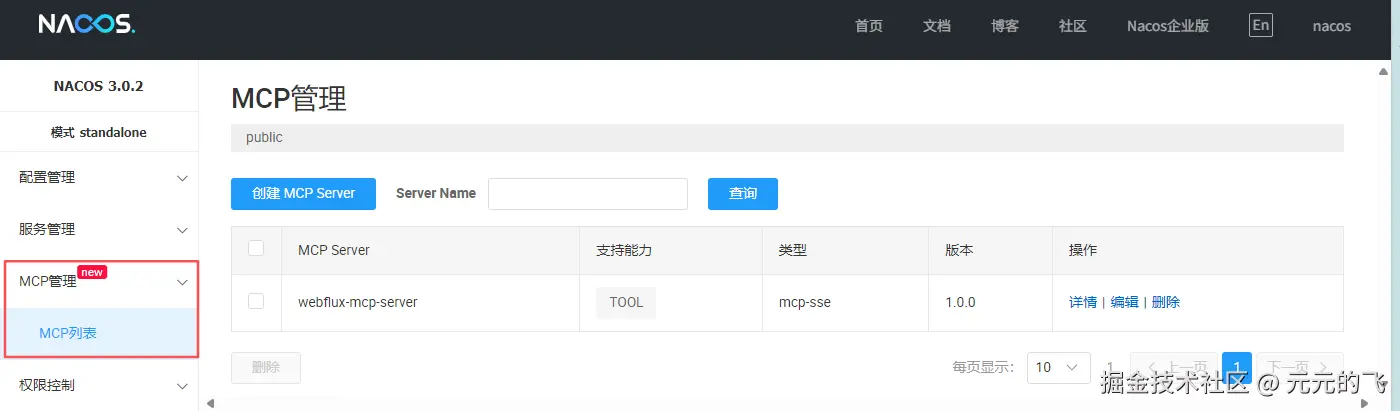 通过使用Spring AI Alibaba 框架开发 MCP Server, 可以在 MCP Server启动后动态注册至 Nacos,并对齐进统一管理,支持以下能力: