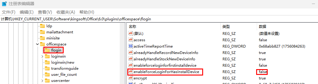 HKEY_CURRENT_USER\Software\kingsoft\Office\6.0\plugins\officespace\flogin