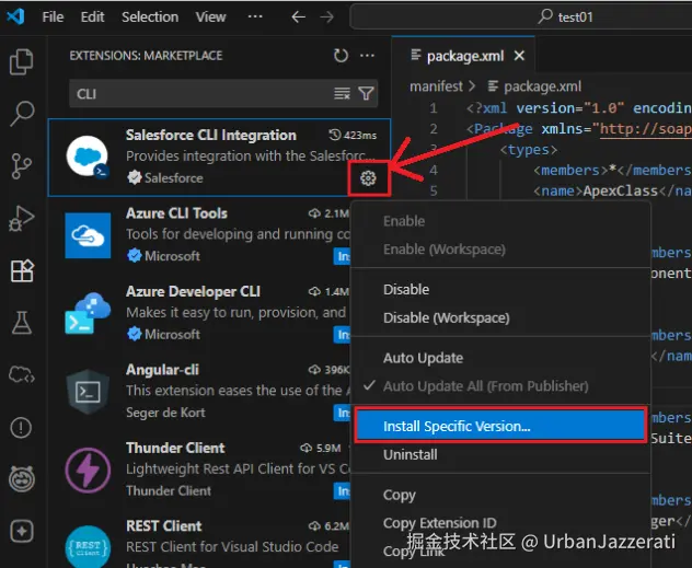 - 点击插件右侧的 ⚙️图标 → Install Specific Version