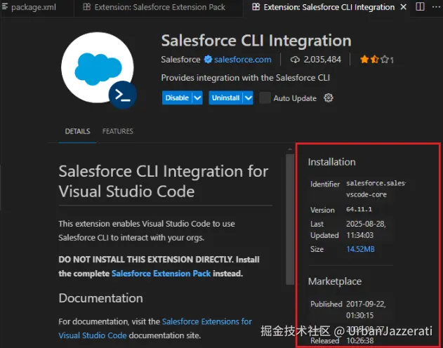 - 经Google搜索发现:Salesforce CLI v64.11.1与VS Code插件冲突