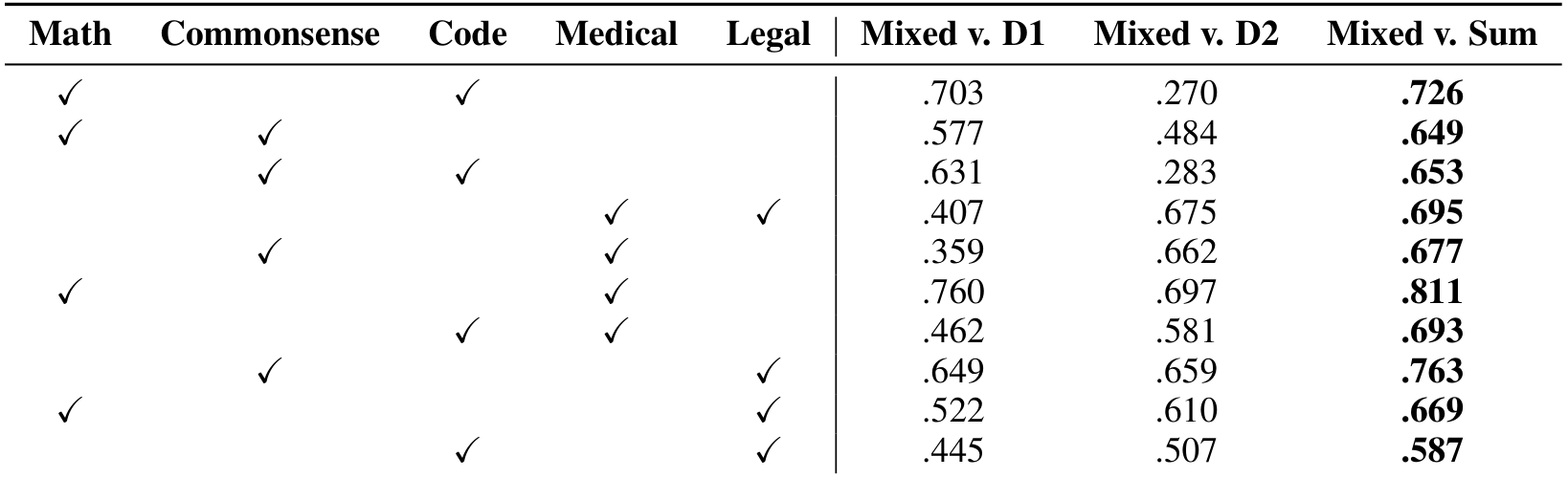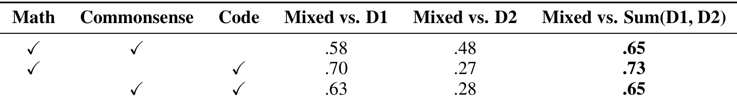 exhibits an additive property when finetuning datasets are mixed. In addition,