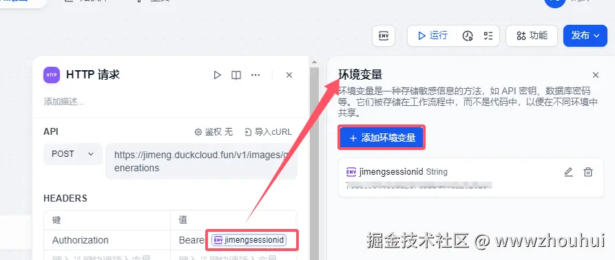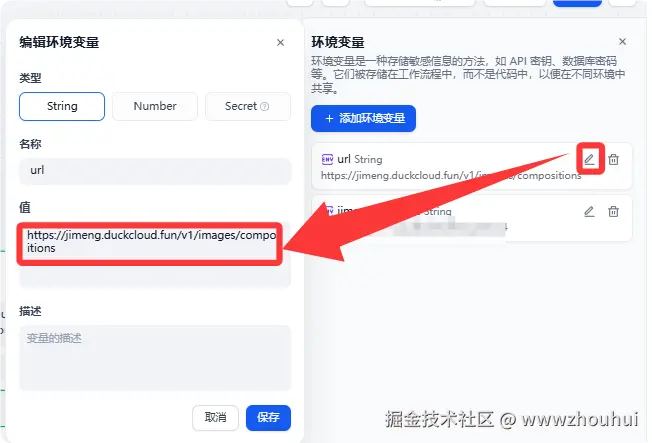 这里图生图的接口我们使用环境变量赋值。