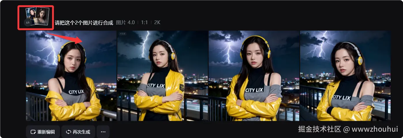 此外我们还可以上传多个图,实现多图的组合类似nana-banana 多个图合成一个图的效果。