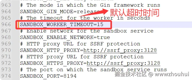 默认的情况下dify沙箱运行环境代码执行超时时间设置15秒