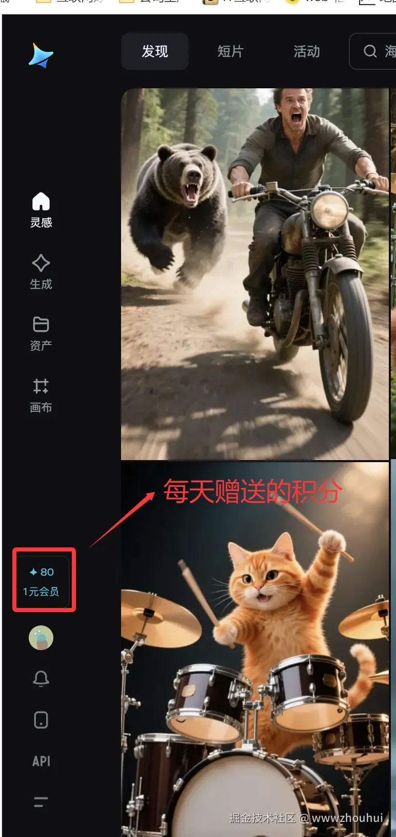 由于我账号不是会员号,每天送80积分,文生图每张图消耗1积分。大家省着点用。