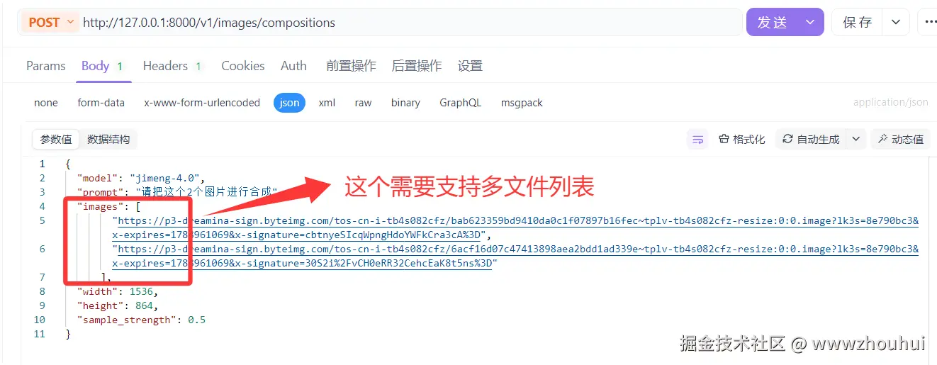 这个HTTP请求是调用一个后端一个接口服务,这个接口服务可以实现即梦AI文生图、文生视频、图生视频的逆向。本次重点新增加了即梦4.0文生图和图生图功能。大家可以使用即梦每天送的积分来使用。服务端部署这里就不做详细展开。