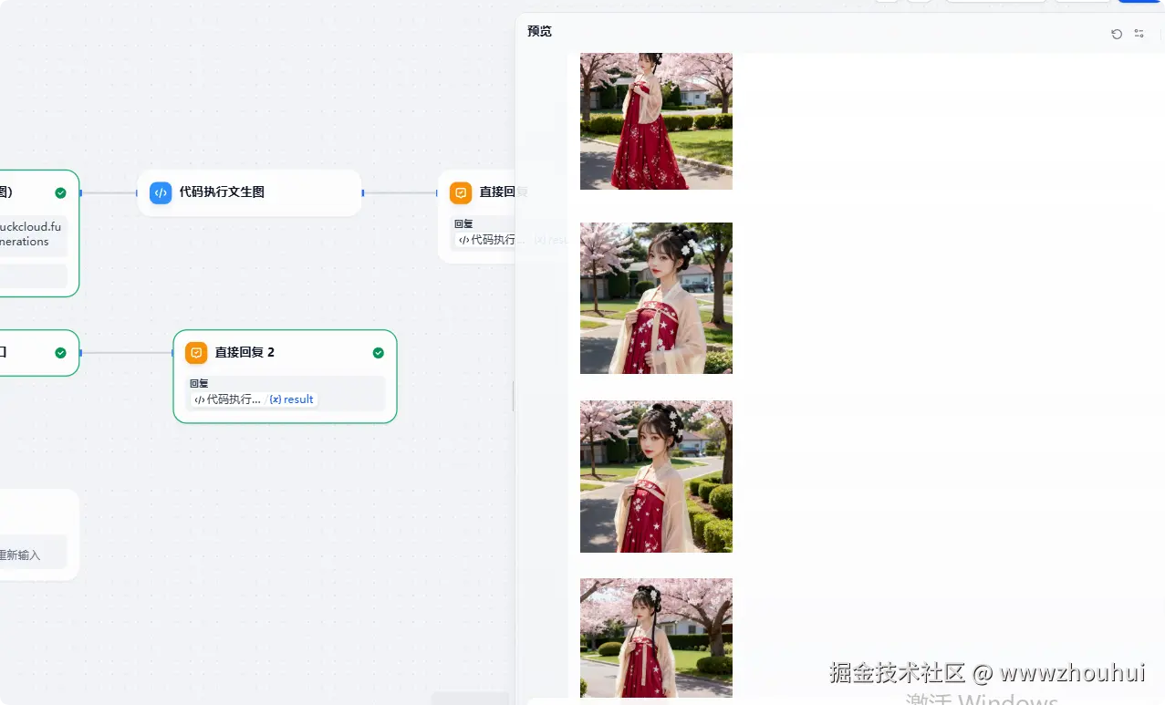 通过这套实践方案,用户能够低成本体验即梦 4.0 的进阶生成能力 ------ 借助平台每日赠送的免费积分,无需复杂的后端开发,就能快速生成具备一致性的组图和多图合成效果,极大降低了 AI 图像创作的技术门槛和使用成本。在实际验证中,该工作流能够稳定响应不同类型的生成需求,无论是通过简单提示词生成一组风格统一的图像,还是上传多张图片实现创意合成,都能产出符合预期的高质量内容,有效解决了普通用户调用即梦 4.0 模型时流程繁琐、多图处理场景难以实现的问题。同时,工作流具备良好的扩展性 ------ 小伙伴们可以基于此框架扩展更多实用功能,如电商平台的商品多场景图生成、社交媒体的创意素材批量制作、设计行业的多方案快速迭代等,进一步丰富 Dify 平台的图像创作应用场景。
