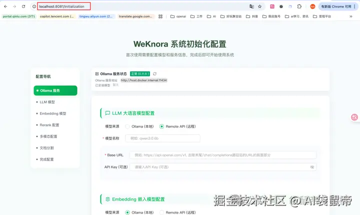 我只需要拿着这个地址,在浏览器打开,就能直接在本地使用开源ima:Weknora 你看,是不是很简单