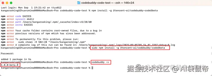 npm install -g @tencent-ai/codebuddy-code 用codebuddy -v来检验是否安装成功了