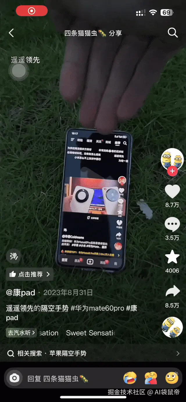 国内版搭配DeepSeek,效果也还不错 但我这次选了国际版。 体验下来,我发现Codebuddy Code跟Claude Code非常像 好用是真好用 它丝滑解决了我的一些实际需求。 昨天搞到半夜3点,头都熬秃了... (不晓得我的肾还顶不顶得住) 好在最终效果让我很满意。 Codebuddy Code已经帮我节省了大量时间。 >/ 实现任意网页隔空控制 之前刷抖音,发现华为的手机可以隔空耍手机,华为的车还可以隔空开门 我当时就觉得好有意思!