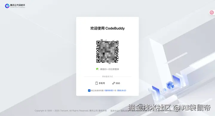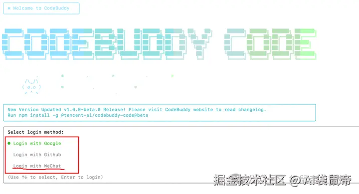 codebuddy 启动后可选Google或者GitHub账号登录,还支持微信登录~