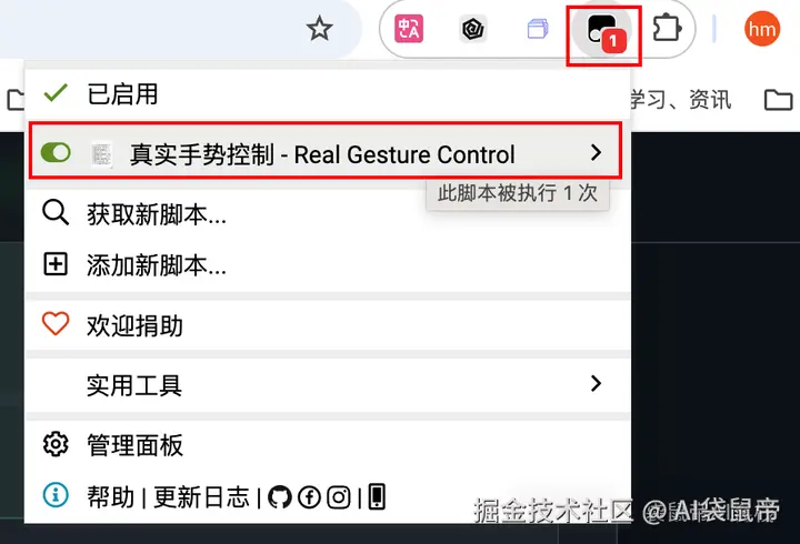 我完全不懂油猴插件,这也是我第一次制作。 经过几轮bug修复和功能优化后,居然成功的完成了! 哈哈哈 真挺有意思的,手势识别准确度很高,有一丢丢延迟,但还好。 安装这个油猴插件也非常简单 先安装一个叫「篡改猴」的浏览器插件。 然后把codebuddy生成的这个隔空操作网页插件添加到篡改猴,启用即可
