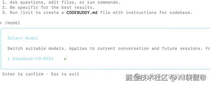 页面登录成功后,codebuddy CLI也就登录成功 如果是用微信登录是进入国内版,目前只有DeepSeek V3模型