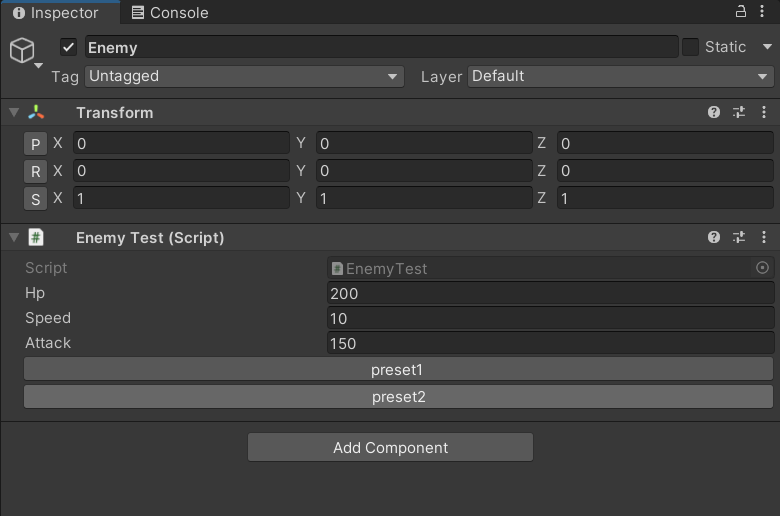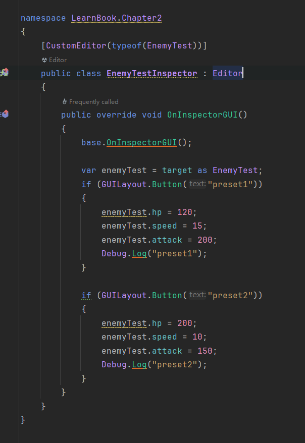 脚本Inspector进行拓展开发,简单的设置两个按钮,点击按钮可以将EnemyTest